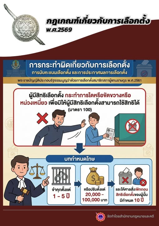 การกระทำผิดเกี่ยวกับการเลือกตั้ง การนับคะแนน และการประกาศผลการเลือกตั้ง Post author:Maelao @85 Post published:20 January 2569 Post category:ข่าวสารประชาสัมพันธ์ Post comments:0 Comments การกระทำผิดเกี่ยวกับการเลือกตั้ง การนับคะแนน และการประกาศผลการเลือกตั้ง Post Views: 0 FacebookFacebookXXLINELine You Might Also Like เตือนภัยข้าราชการบำนาญ 22 December 2568 ตรวจตรารักษาความปลอดภัยในพื้นที่ 28 November 2567 พิธีบำเพ็ญกุศลสัตตมวาร 7 วัน 30 October 2568 Leave a Reply Cancel replyCommentEnter your name or username to comment Enter your email address to comment Enter your website URL (optional) Save my name, email, and website in this browser for the next time I comment.
