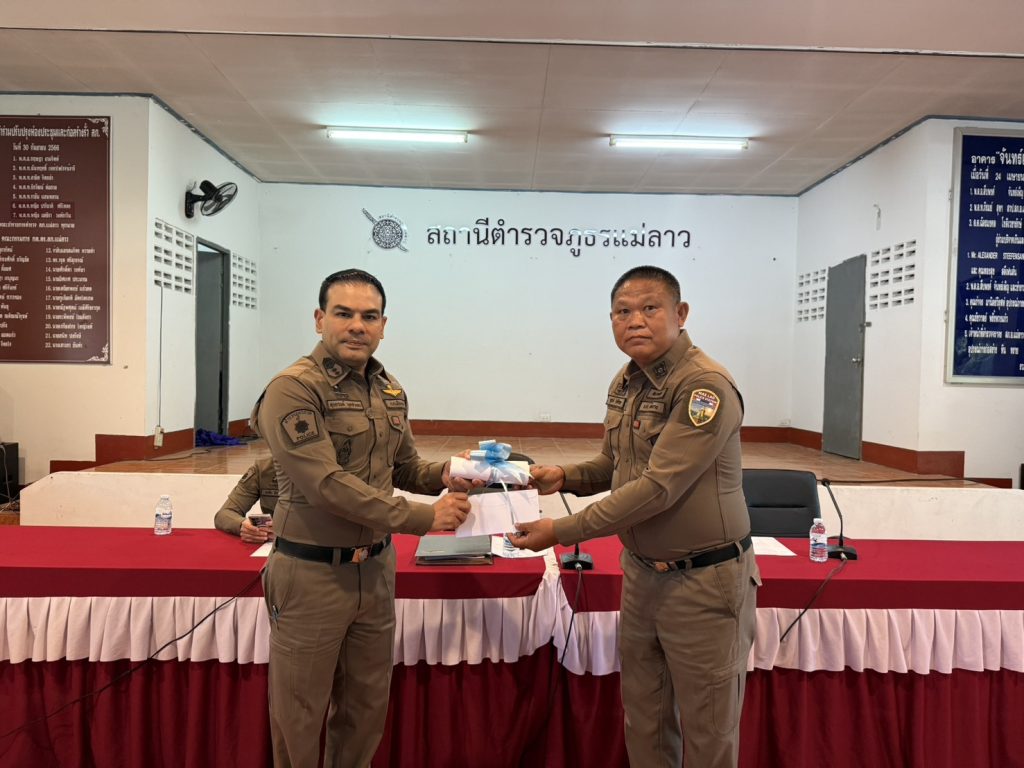ประชุม ชี้แจงข้อราชการ Post author:Maelao @85 Post published:24 March 2569 Post category:ข่าวภารกิจผู้บังคับบัญชา / ข่าวสารประชาสัมพันธ์ Post comments:0 Comments วันจันทร์ที่ 23 มีนาคม 2569 เวลา 14.00 น. พ.ต.อ.สุรกานต์ มุดซาเคน ผกก.สภ.แม่ลาว , พ.ต.ท.สาธิต จิตกล้า รองผกก.(สอบสวน) สภ.แม่ลาว , พ.ต.ท.สุภาพ จันทะเวียง รองผกก.สส.สภ.แม่ลาว ได้ประชุมชี้แจงข้อราชการ , ภารกิจที่ต้องปฏิบัติ ,พร้อมทั้งดำเนินการตรวจหาสารเสพติด ในตัวของเจ้าหน้าที่ตำรวจ สถานีตำรวจภูธรแม่ลาว และมอบรางวัลให้กับข้าราชการตำรวจ 5 สายงาน ที่ปฏิบัติหน้าที่ดีเด่น ประจำเดือน มีนาคม 2569 และได้มอบสวัสดิการเป็นบิลเติมน้ำมันสำหรับใช้ในการปฏิบัติงานให้กับข้าราชการตำรวจทุกนาย ซึงก่อนเข้าร่วมประชุม ได้รับประทานอาหารกลางวัน ณ ห้องประชุมสถานีตำรวจภูธรแม่ลาว Post Views: 0 FacebookFacebookXXLINELine You Might Also Like สภ.แม่ลาว ซ้อมแผนเผชิญเหตุ 26 February 2569 จราจร กวดขันวินัยจราจร 4 January 2568 เจ้าหน้าที่จราจร ช่วยเหลือประชาชน 13 January 2568 Leave a Reply Cancel replyCommentEnter your name or username to comment Enter your email address to comment Enter your website URL (optional) Save my name, email, and website in this browser for the next time I comment.