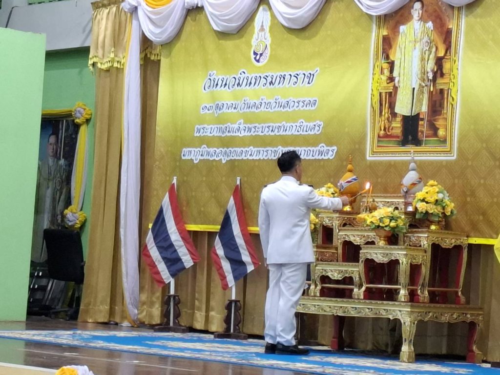 สถานีตำรวจภูธรแม่ลาว ร่วมพิธีวัน นวมินทรมหาราช 13 ตุลาคม 2568 Post author:Maelao @85 Post published:14 October 2568 Post category:ข่าวสารประชาสัมพันธ์ Post comments:0 Comments วันจันทร์ที่ 13 ตุลาคม 2568 เวลา 07.00 น. พันตำรวจโทสาธิต จิตกล้า รองผกก.(สอบสวน) สภ.แม่ลาว พร้อมด้วยข้าราชการตำรวจสถานีตำรวจภูธรแม่ลาว ร่วมพิธีทำบุญตักบาตรถวายเป็นพระราชกุศล และพิธีวางพวงมาลา เนื่องใน วัน นวมินทรมหาราช 13 ตุลาคม 2568 ณ หอประชุมอำเภอแม่ลาว Facebook Post Views: 0 FacebookFacebookXXLINELine You Might Also Like อำนวยความสะดวกการจราจร งานสวดพระอภิธรรมศพพ่อครูจันทร์ 5 November 2568 จราจรอำนวยความสะดวกการจราจร 24 December 2567 สภ.แม่ลาว ซ้อมแผนเผชิญเหตุ 26 February 2569 Leave a Reply Cancel replyCommentEnter your name or username to comment Enter your email address to comment Enter your website URL (optional) Save my name, email, and website in this browser for the next time I comment.