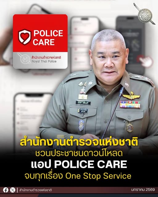สำนักงานตำรวจแห่งชาติชวนประชาชนดาวน์โหลดแอปพลิเคชัน “POLICE CARE” คู่มือประชาชนหนึ่งเดียว ที่รวมบริการ ข้อมูลข่าวสาร ติดตามผลคดี การเตือนภัยต่าง ๆ มาไว้ในแอปพลิเคชันเดียว . วันนี้ (13 มกราคม 2569) พล.ต.ท.ชัยต์พจน สูวรรณรักษ์ ผู้บัญชาการสำนักงานกำลังพล/รองโฆษกสำนักงานตำรวจแห่งชาติ เปิดเผยว่า พล.ต.อ.กิตติ์รัฐ พันธุ์เพ็ชร์ ผู้บัญชาการตำรวจแห่งชาติ (ผบ.ตร.) มีนโยบายให้จัดระบบเทคโนโลยีของสำนักงานตำรวจแห่งชาติให้พี่น้องประชาชนคนไทยเข้าถึงข้อมูลด้วยความสะดวกรวดเร็ว โดยเฉพาะข้อมูลเกี่ยวกับกฎหมายและคดี ได้มอบหมายให้ พล.ต.อ.นิรันดร เหลื่อมศรี รองผู้บัญชาการตำรวจแห่งชาติ (รับผิดชอบงานกฎหมายและคดี) พัฒนาแอปพลิเคชัน “POLICE CARE” ที่รวบรวมข้อมูลและบริการทั้งหมดของสำนักงานตำรวจแห่งชาติไว้ในแอปพลิเคชันเดียว เชื่อมโยงฐานข้อมูลระบบเทคโนโลยีสารสนเทศทั้งหมดไว้ด้วยกัน . แอปพลิเคชัน “POLICE CARE” เป็นคู่มือประชาชนที่เป็นศูนย์รวมบริการ ข้อมูลข่าวสาร ติดตามผลคดี การแจ้งความ ตลอดจนข้อมูลข่าวสารเตือนภัยต่าง ๆ มาไว้ในแอปพลิเคชันเดียว โดยฟังก์ชันเด่นของแอปพลิเคชันนี้ ได้แก่ มีฟีเจอร์คู่มือการแจ้งความ, ค้นหาสถานีตำรวจ, ตรวจสอบข้อมูลคดีและใบสั่ง, ตรวจสอบตำรวจว่าเป็นตำรวจจริงหรือไม่ เพื่อป้องกันมิจฉาชีพ, ขั้นตอนและเอกสารในการไปแจ้งความ, กฎหมายต้องรู้, คู่มือการขออนุญาตต่าง ๆ และช่องทางร้องเรียนตำรวจกรณีไม่ได้รับความเป็นธรรม เพื่อให้ประชาชนอย่างเข้าถึงสะดวก เข้าใจง่าย และปลอดภัย . นอกจากนี้ แอปพลิเคชัน “POLICE CARE” มีฟังก์ชันสำคัญในการช่วยป้องกันภัยอาชญากรรมออนไลน์ มีเมนูแจ้งติดต่ออายัดบัญชีธนาคารด้วยตนเอง เพื่อลดความเสียหายและเพิ่มโอกาสในการติดตามทรัพย์สินคืน ตลอดจนช่วงเทศกาลสำคัญต่าง ๆ จะมีฟีเจอร์ข้อมูลสำคัญ อาทิ ข้อมูลเส้นทางจราจร คำแนะนำการเดินทาง จุดบริการทางหลวง โครงการฝากบ้านกับตำรวจ เป็นต้น เพื่อรองรับการเดินทางและดูแลความปลอดภัยประชาชน . และเพื่อเป็นการให้ความรู้ประชาชนในการปฏิบัติตนที่ถูกต้องในการลงคะแนนเลือกตั้ง แอปพลิเคชัน “POLICE CARE” ได้เพิ่มเติมการอัปเดตบริการ "ข้อมูลกฎหมายเลือกตั้ง" โดยเน้นความผิดที่เกี่ยวข้องกับประชาชนและพบการกระทำความผิดบ่อยครั้ง เช่น ความผิดฐานนำบัตรออกจากสถานที่เลือกตั้ง ถ่ายภาพ ทำลาย ขายเสียง ฯลฯ จัดเรียงข้อมูลฐานความผิดเป็นหมวดหมู่ เพิ่มความสะดวกให้ประชาชนในการใช้งาน . พล.ต.อ.นิรันดร เหลื่อมศรี รอง ผบ.ตร. ให้ข้อมูลเพิ่มเติมว่า แอปพลิเคชัน “POLICE CARE” เป็นการยกระดับการให้บริการของสำนักงานต