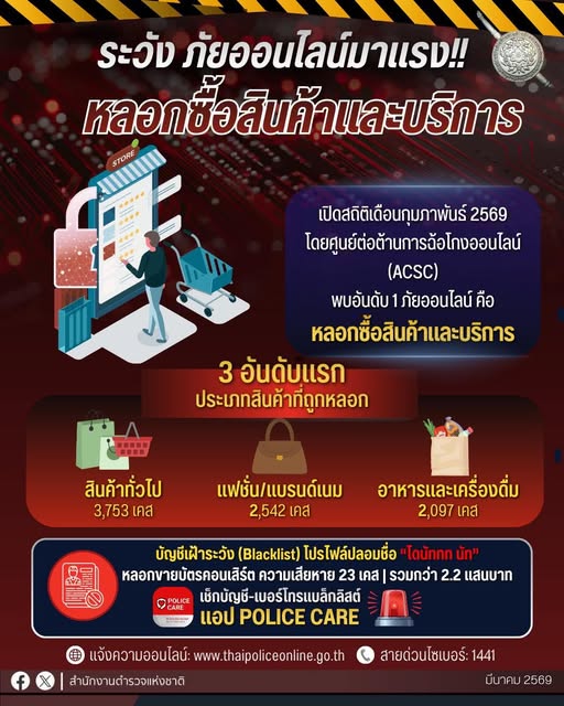เอ๊ะ ก่อนโอน เช็ก ก่อนชอป Post author:Maelao @85 Post published:6 March 2569 Post category:ข่าวสารประชาสัมพันธ์ Post comments:0 Comments ระวังภัยออนไลน์ที่กำลังมาแรง จากสถิติเดือนกุมภาพันธ์ที่ผ่านมา พบว่าการหลอกซื้อสินค้าและบริการยังเป็นภัยออนไลน์ ที่สร้างความเสียหายให้เหยื่อจำนวนมาก . เช็กบัญชีมิจฉาชีพก่อนโอน ที่แอป Cyber Check หรือ POLICE CARE ด้วยความปรารถนาดีจากสำนักงานตำรวจแห่งชาติ Post Views: 1 FacebookFacebookXXLINELine You Might Also Like หยุดฝุ่น PM 2.5 26 January 2568 กิจกรรมวันเด็ก 10 January 2568 ประชุม วันที่ 17 ธันวาคม 2567 17 December 2567 Leave a Reply Cancel replyCommentEnter your name or username to comment Enter your email address to comment Enter your website URL (optional) Save my name, email, and website in this browser for the next time I comment.